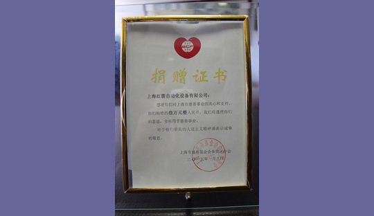 2015年,上海紅箭自動化設備有限公司為上海市慈善基金會捐款 2015